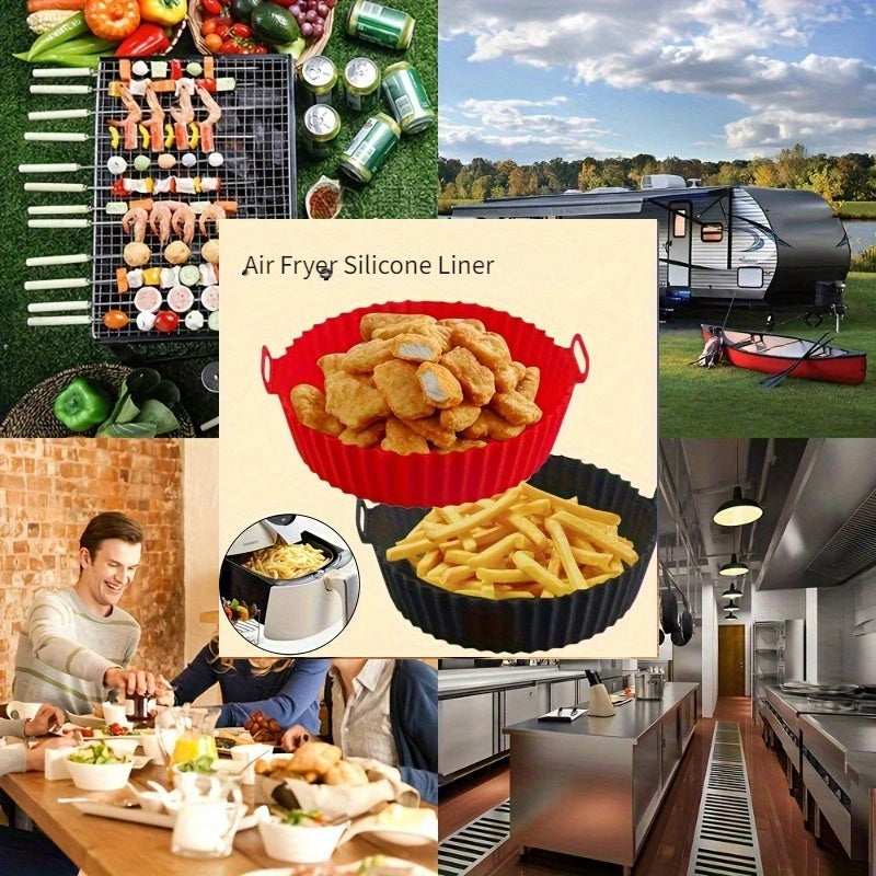 1pc Sartén de silicona multiusos para freidora, resistente al calor, de grado alimenticio, reciclable, engrosada, con tapete antiadherente para hornear, para cocina doméstica, horneado