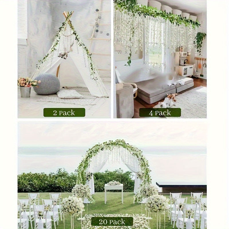 4 paquetes de 72 pulgadas (182,88 cm) de flores colgantes artificiales blancas de wisteria - Guirnalda de vino para arco de boda, fiesta, jardín, decoración del hogar - Perfecto para el Día de San Patricio, Pascua, primavera y verano, decoración al aire