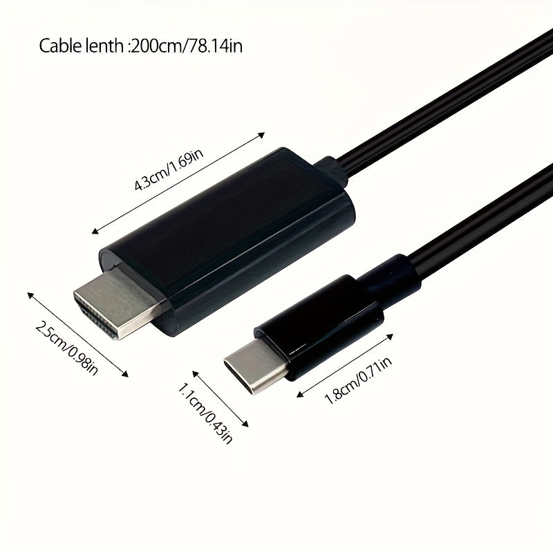4K 60Hz Cable USB3.1 Tipo C a HDTV de 2m/78,14 pulgadas/6,56 pies, Plug and Play, Compatible con MacBook, iPad, iPhone, Teléfono móvil, Tableta y Portátil