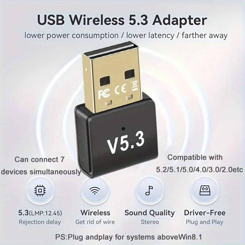 Adaptador de red USB '5.3 Adaptador inalámbrico, enchufa y juega sin controlador, admite conexiones de varios dispositivos para auriculares/altavoces/tabletas/teclados y ratones/controladores de juegos/máquinas de grabado/ordenadores/teléfonos móviles