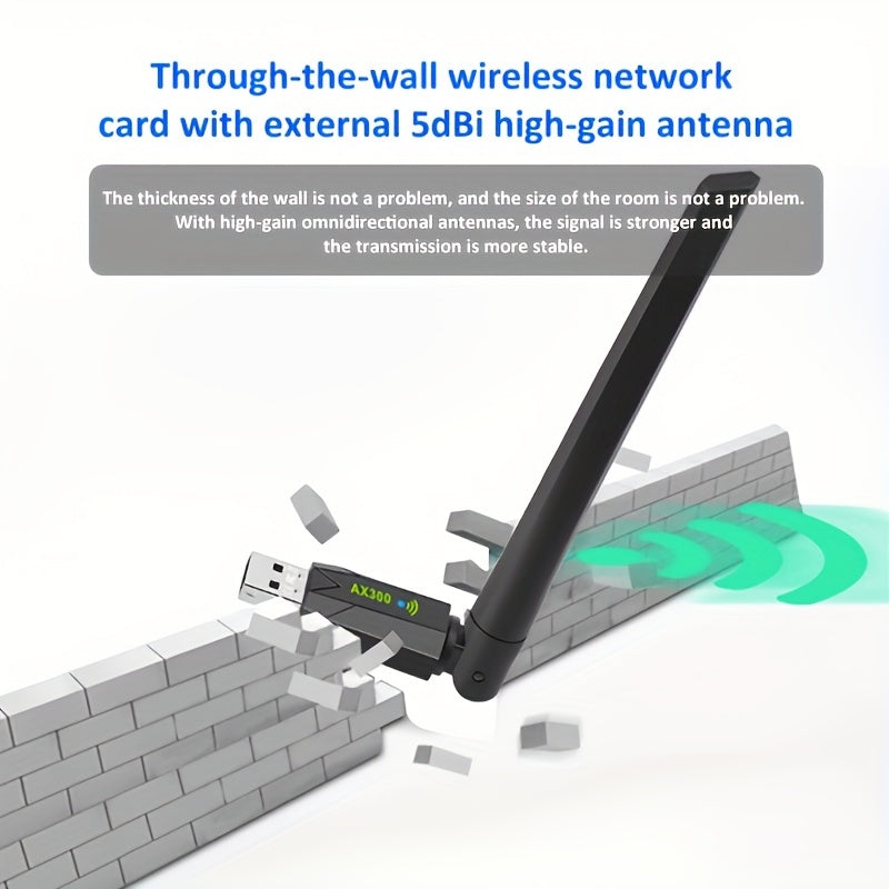 Adaptador inalámbrico WiFi 6 de 286 Mbps, USB, antena de alta ganancia de 2.4 GHz, compatible con 802.11ax, banda dual 5G/4G/3G, plug & play sin necesidad de drivers para Windows 7/10/11, SDIO 6.0, múltiples protocolos de encriptación, gran penetración y