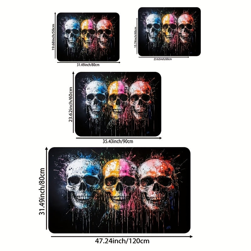 Alfombra de Entrada de Diseño de Cráneo Artístico - Lavable en Máquina, Rectangular, de Poliéster con Revestimiento de PVC, Alfombra Antideslizante para Entrada, Sala de Estar, Dormitorio, Cocina - Alfombra Decorativa de Suelo Hecha a Máquina