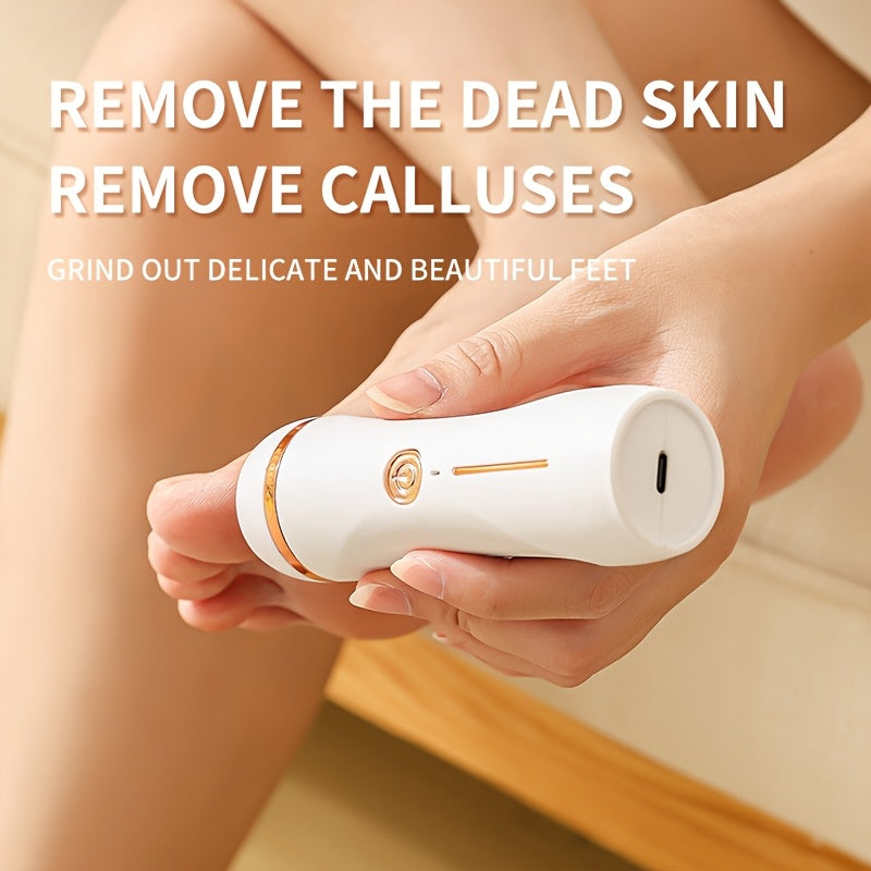 Amoladora Eléctrica para Pies - Removedor y Pulidor con 2 Velocidades, Batería de Litio Inalámbrica, Ideal para Pies Duros o Gruesos, Beige Claro/Rosa Brillante/Blanco - Compatible con Dispositivos USB, Herramienta de Pedicura, Diseño Elegante, Construcc