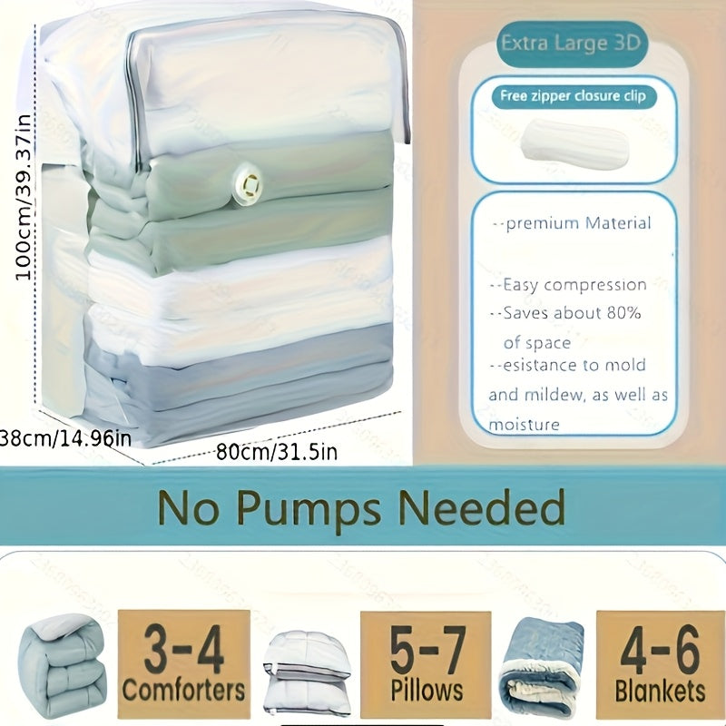Bolsas de almacenamiento de vacío 3D extra grandes que ahorraban espacio del 80% - Organice y proteja sencillamente edredones, mantas, ropa de cama y más. Ideal regalo de Acción de Gracias, Navidad, Halloween para seres queridos, almacenamiento de edredo