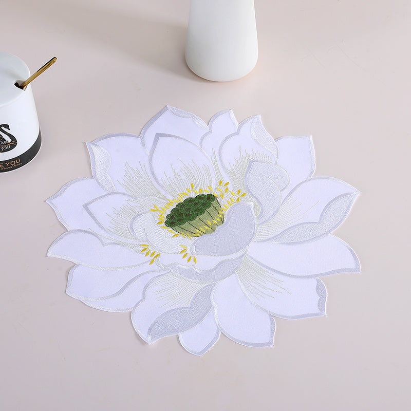 Camino de Mesa Bordado con Flores de Loto Elegante - Rojo Vivo, Blanco, Naranja, Rosa, Verde Mantel de Poliéster para Navidad, Fiestas, Bodas y Decoración del Hogar (15x15cm/30x30cm/35x35cm), Decoración Navideña
