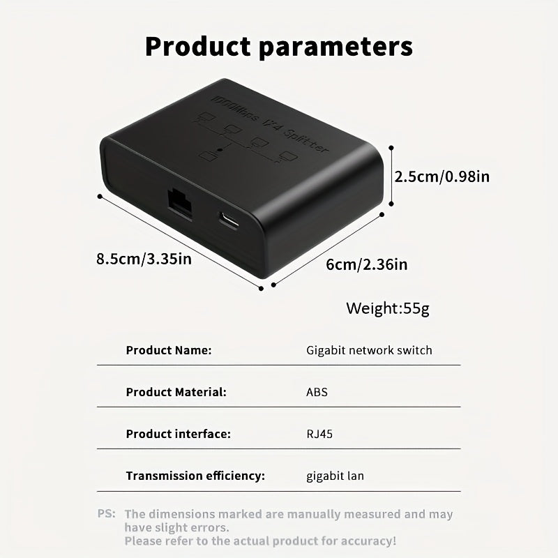 Divisor de cable Ethernet 1 a 4 1000 Mbps, Divisor de cable de Internet Dockteck 2,54 pulgadas 4 salidas Alta velocidad de red Gigabit para LAN Puerto RJ45 Router Switch Trabaja con cable Cat5/5e/6/7/8