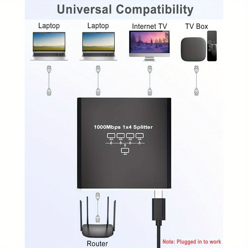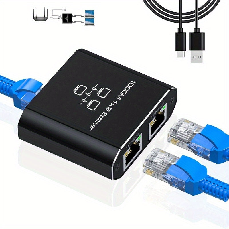 Divisor de red Ethernet de alta velocidad de 4 puertos 1000 Mbps, alimentado por USB con conector RJ45 y cables Cat5/5e/6/7/8, Internet de gigabit para 4 dispositivos conectados simultáneamente, conectividad de red, conectividad versátil, accesorio moder