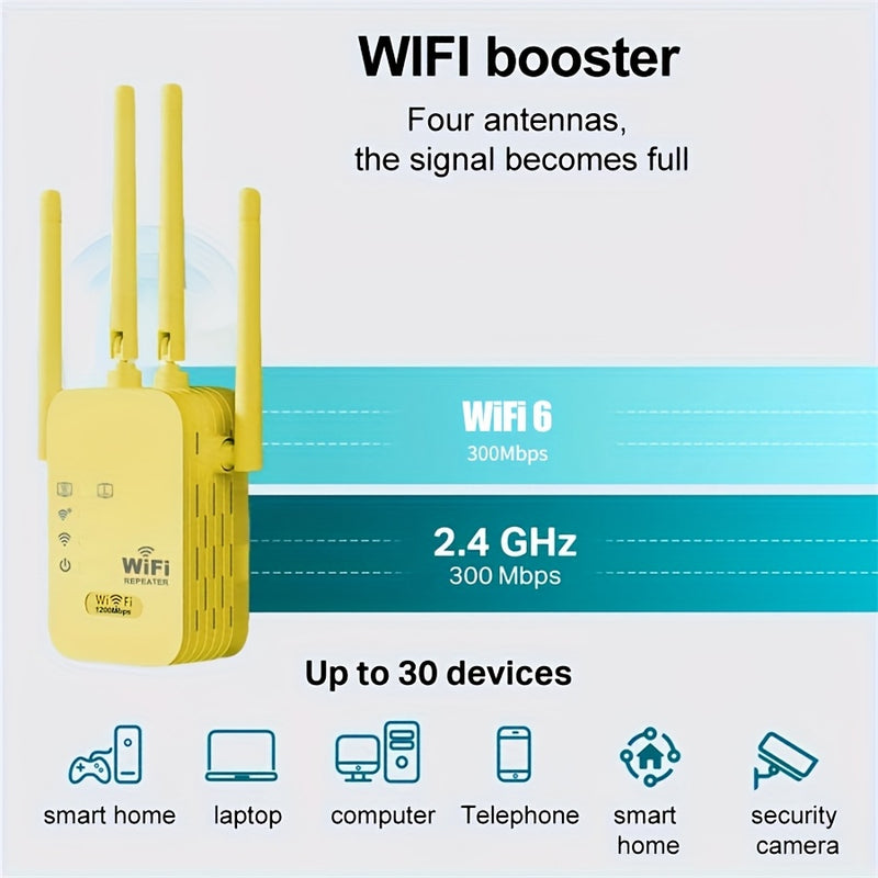 Extensor WiFi de 1200Mbps - Repetidor/Router sin varillas, Cobertura Hasta 10,000 Pies Cuadrados, Anti-Interferencias, Perfecto para Noches de Juegos Familiares y Celebraciones al Aire Libre - Enchufe Estadounidense, Regalo Ideal para Fiestas y Cumpleaño