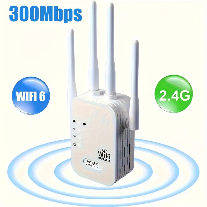 Extensor WIFI6, Amplificador de Señal WIFI, Soporte para Puerto Ethernet, 4 Antenas de Alto Rendimiento, Cobertura de 360° hasta 9000 pies cuadrados, con Puerto Ethernet, Velocidad Inalámbrica de Hasta 300Mbps y Conexión Estable por Cable. Función de Rel