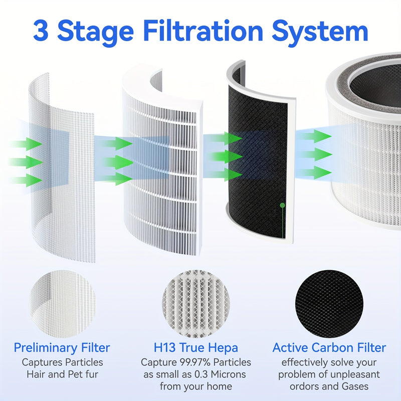Filtro de Repuesto para Purificador de Aire Inteligente WiFi Levoit Core 200S - True HEPA H13, Filtración de 3 Etapas para una Mejora de la Calidad del Aire Interior, Blanco