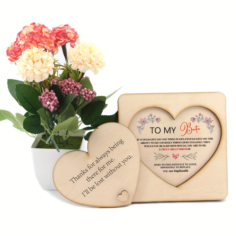 Juego de 2 Piezas de Decoración de Escritorio de Madera - Regalo Perfecto para Mejores Amigos, Cumpleaños y Aniversario de Amistad - Adorno Versátil para el Hogar y la Oficina