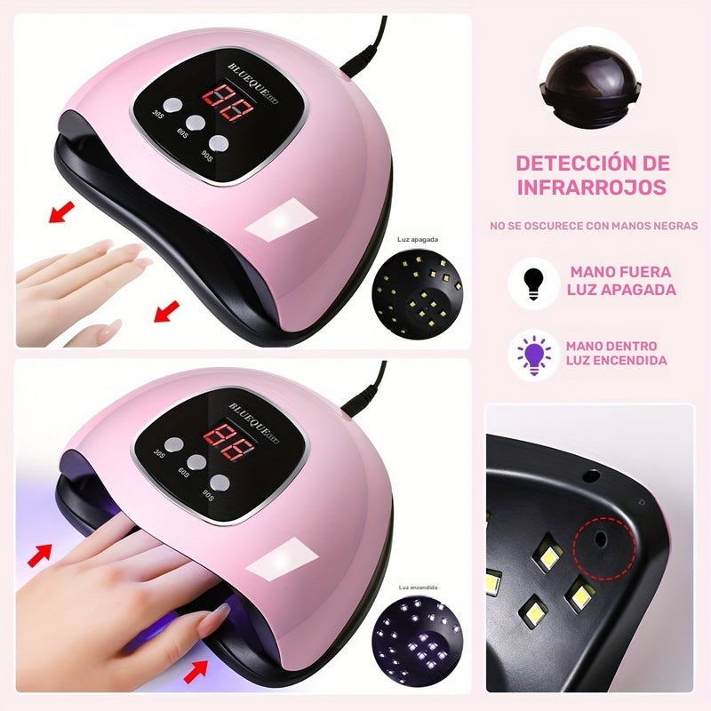 Lámpara LED profesional Limegirl 11T, 3 configuraciones de temporizador para todos los esmaltes de uñas de gel, sensor automático, pantalla LCD, alimentada por USB, herramienta de arte de uñas rosa para manicura y pedicura.