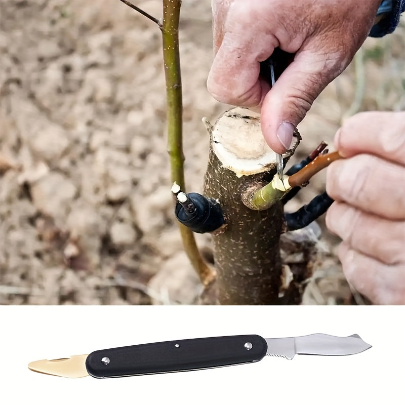 Navaja de Injerto de Acero Inoxidable - Herramienta Manual Retro para Juntar Frutas y Árboles Hortalizas, Mango Ergonómico con Hoja de Precisión, Sin Necesidad de Electricidad para Jardinería Profesional y Aficionada