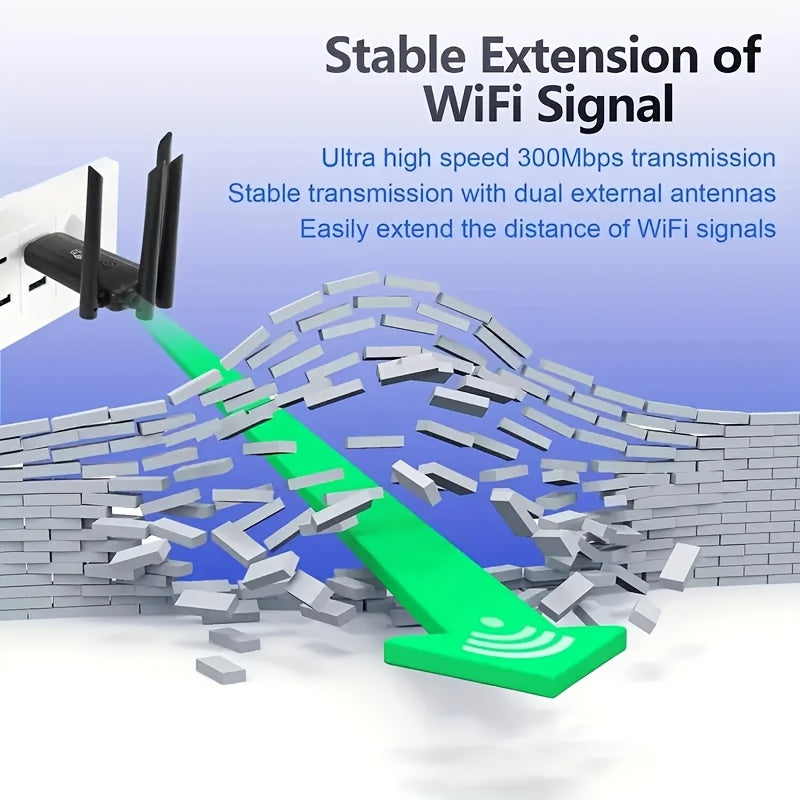 Repetidor de WiFi USB de Alta Velocidad con 4 Antenas, Amplificación Súper de Señal de 300Mbps, y Blanco, Conexión Directa SSD para una Potente Señal WiFi, Ideal para Oficinas, Edificios Altos y Áreas de Internet Débiles, Conectividad en la Oficina | Red