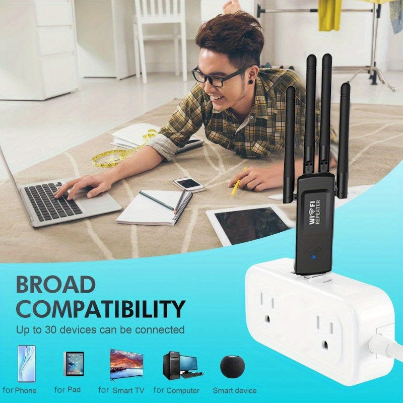 Repetidor inalámbrico USB WiFi de 300 Mbps con 4 antenas - Extensor de rango largo, fácil de usar, soporte para 4K y juegos, adaptador de red para hogar para PC, portátil, Smart TV, router, extensor de red inalámbrica, diseño elegante, construcción durad
