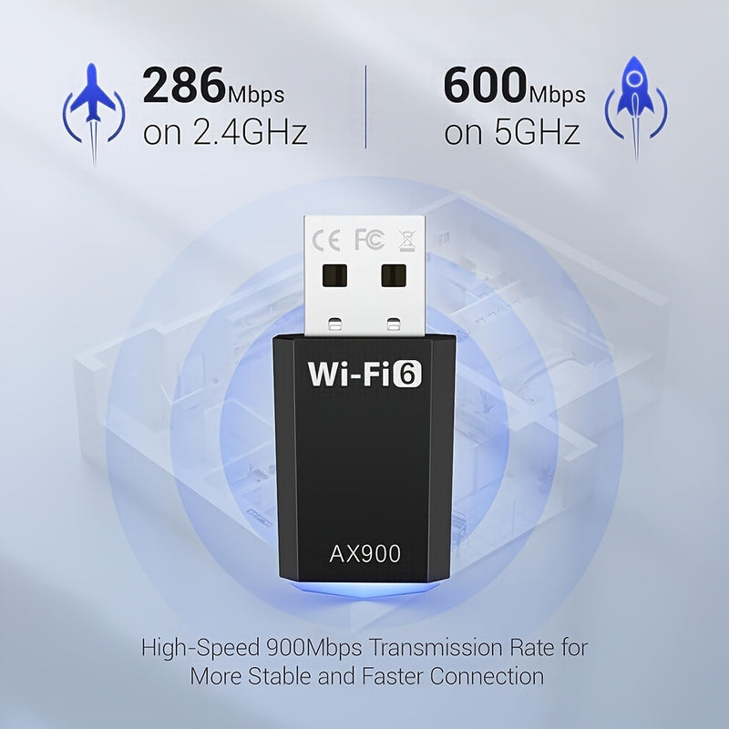 Tarjeta de red WiFi 6 USB, adaptador WiFi de 6 puertos USB para computadoras de escritorio, última Wi-Fi 6 AX900 de doble banda 600Mbps 5G/286Mbps 2.4G, para portátiles Windows 11 10 7, Plug and Play, con controlador integrado