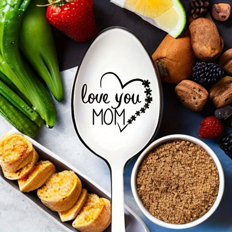 1 cuchara de acero inoxidable grabada "Te amo mamá" - Ideal para café, helado, postres y cereales - Regalo perfecto para cumpleaños, Navidad y fiestas - Decoración festiva de mesa, idea de regalo de vacaciones | Vajilla festiva | Vajilla duradera