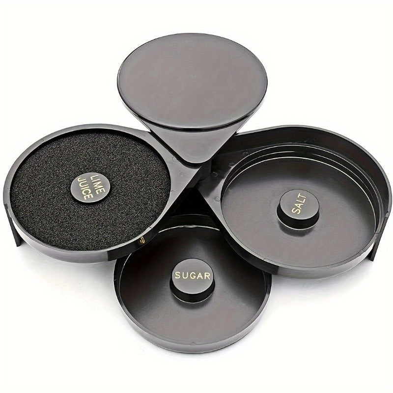 1Pc, Herramientas de barman de 3 niveles, Contenedores de vidrio de sal y azúcar de plástico de 3 capas, Con soportes para especias, Diseñados para margaritas y bebidas mezcladas, Equipo de barman.