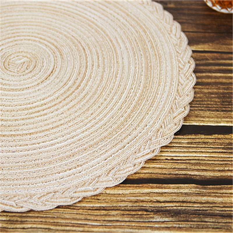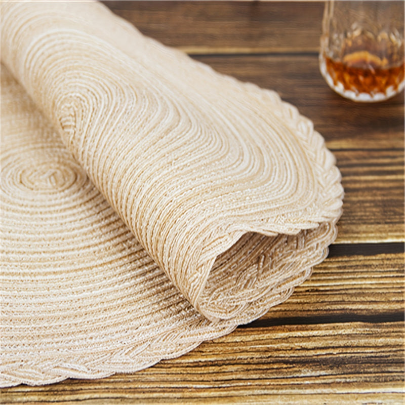 4 individuales redondos trenzados de poliéster - Solo lavado a mano, rayas beige y café, individuales resistentes para comedor, cocina o mesa de centro, individuales para mesa de cocina | Textura trenzada | Poliéster
