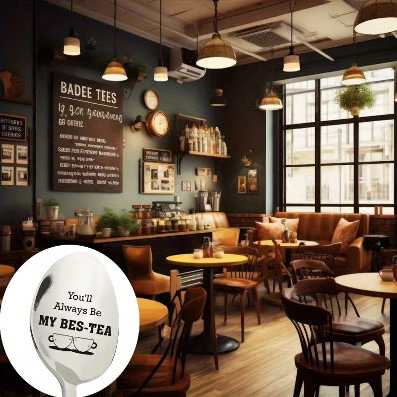 Cuchara de Acero Inoxidable Grabada 'Siempre Serás Mi Mejor Té' - Regalo de Amistad Perfecto para Mujeres, Ideal para Amantes del Café y el Té, Acabado Elegante Plateado