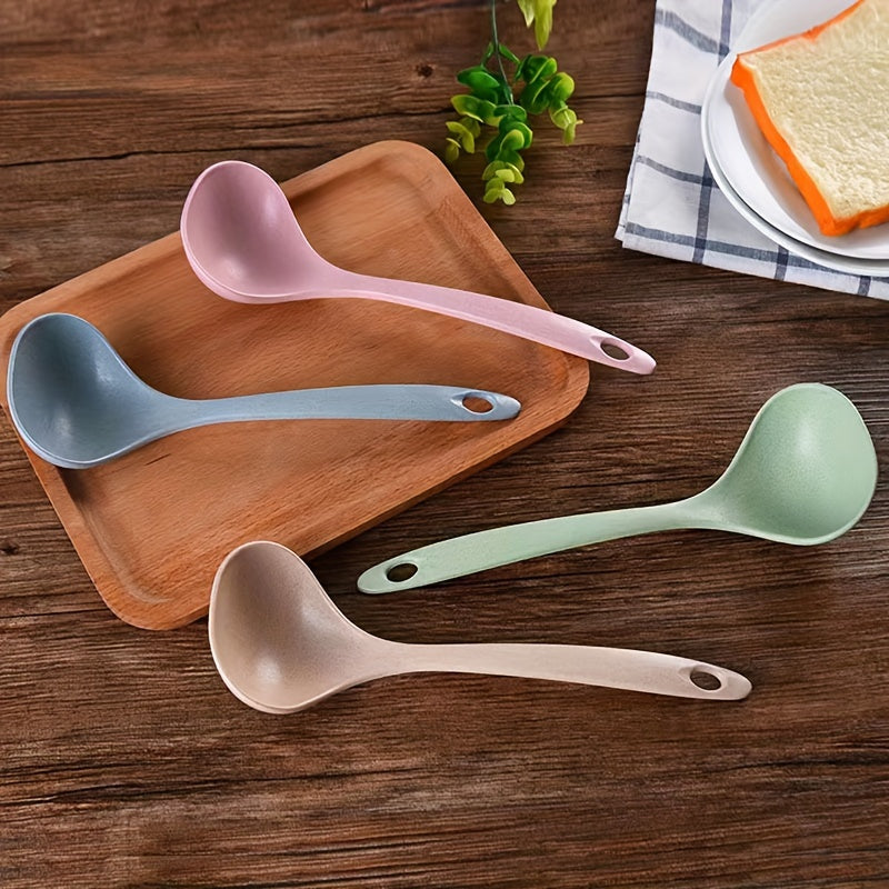 Cuchara de Sopa de Paja de Trigo de Alta Calidad - Grande, Mango Largo y Grueso para Gachas y Arroz, Utensilio de Cocina Duradero