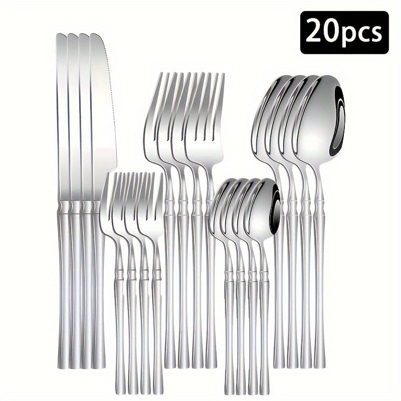 Set de cubiertos de acero inoxidable - 20/30/40 piezas de cubiertos elegantes con mango delgado, vajilla premium para 4/6/8 personas, incluye cuchillos, tenedores, cucharas, cubiertos de postre, ideal para el hogar, la cocina, el restaurante, las fiestas