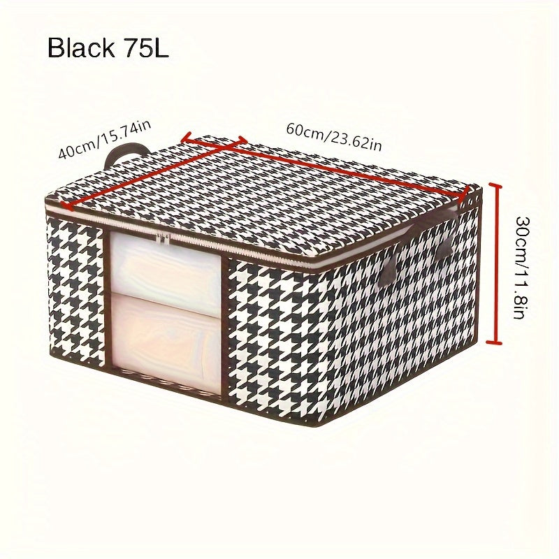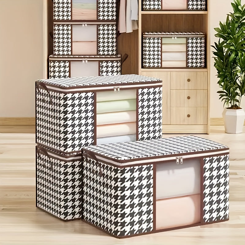 1 Bolsa de Almacenamiento de Gran Capacidad con Estampado de Pata de Gallo y Ventana de Visualización - Tela No Tejida Duradera, Organizador de Ropa Antipolvo y Resistente a la Humedad con Doble Cremallera y Asas - Ideal para Uso Doméstico y de Viaje, Al