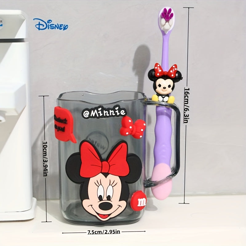 1 cepillo de dientes Disney de Minnie y sus amigos con vaso, diseño lindo y sencillo, resistente a caídas, ideal para viajes, fiestas, vacaciones y cumpleaños