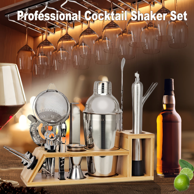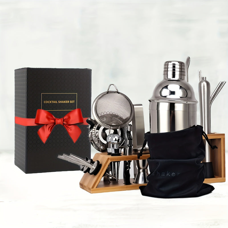 1 Juego De 21 Piezas, Coctelera Con Soporte De Bambú Y Bolsa De Terciopelo, Ideal Para El Hogar, Bar, Mezcla De Bebidas, Kit De Herramientas Profesionales Para Bares En Fiestas