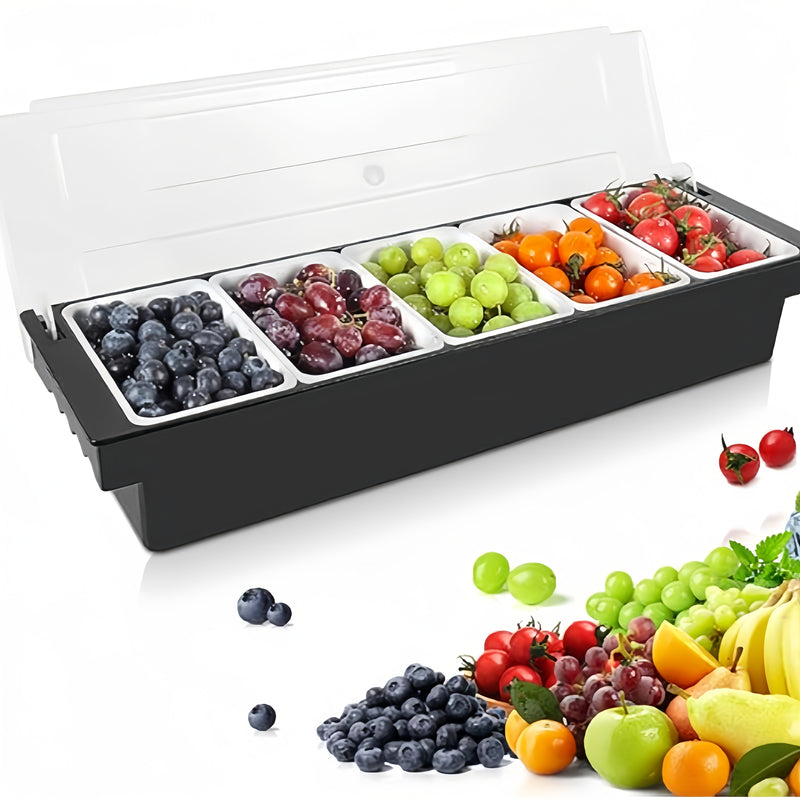 1 Juego de Bandeja para Especias con 6 Compartimentos y Tapa, Utensilios de Cocina para Cóctel Chef - Plástico Duradero, Ideal para Bares, Heladerías y Salserías | Suministros Esenciales para Bares y Restaurantes