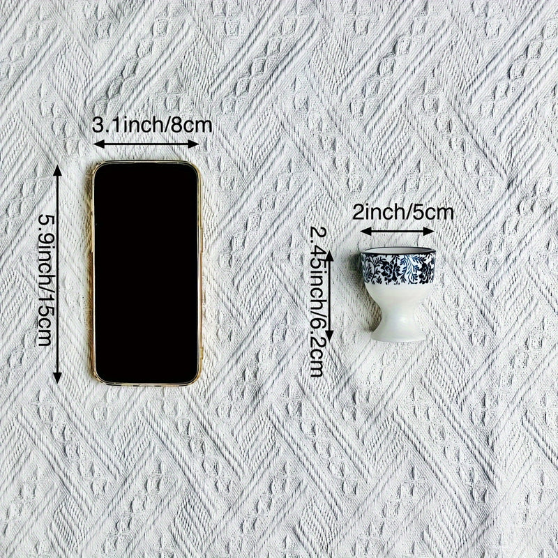 1 Juego/2 Piezas, Taza Para Huevos, Bandeja Para Huevos, Estilo Azul Y Blanco, Color Subrayado, Taza Para Huevos Con Imagen, Para Dieta Diaria, Para Contener Huevos Comestibles, Ideal Para Desayuno, Cena, Etc., Se Puede Usar Para Comidas Familiares, Rega