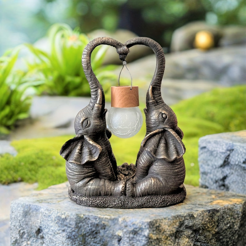 1 pza. Lámpara de estatua con energía solar, diseño de elefante, material de resina, recargable mediante luz solar, sin control remoto, perfecta para jardín, patio, césped, entrada, estanque, balcón o ventana.