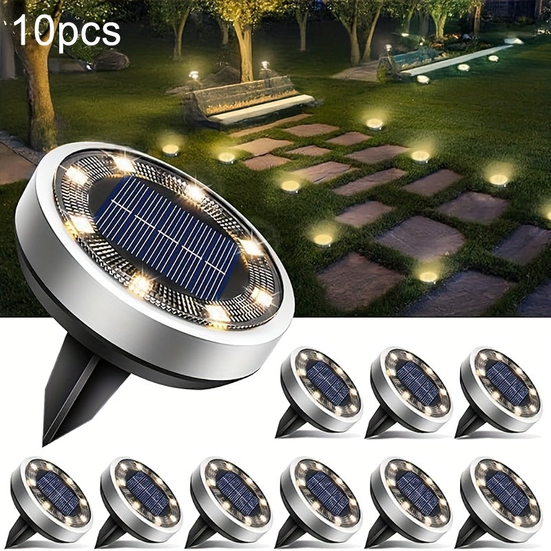 10 piezas de Luces Solares para Suelo con 8 LED, Reforzadas y Engrosadas para Iluminación Exterior Más Brillante, Instalación Fácil Empotrada, Luz Cálida/Blanca, Ideales para Villas, Parques e Iluminación Decorativa, Luces Solares para Exteriores, Carcas