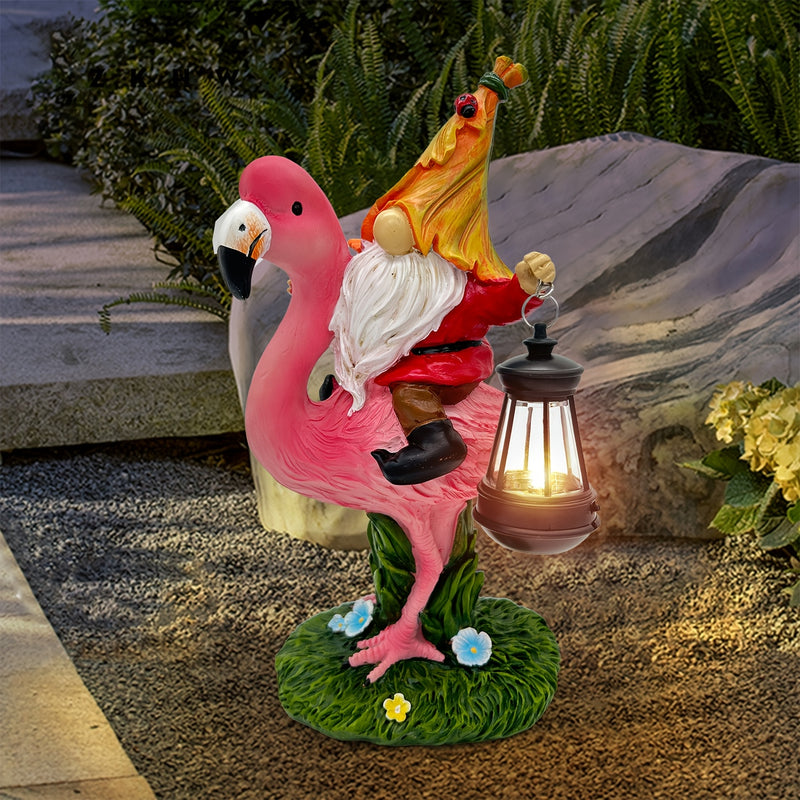 1pc Estatua de jardín de resina de flamenco con energía solar para Navidad con farol, decoración exterior de bajo consumo, control de conmutador, con batería de níquel de 80mAh, para exhibición festiva en interiores