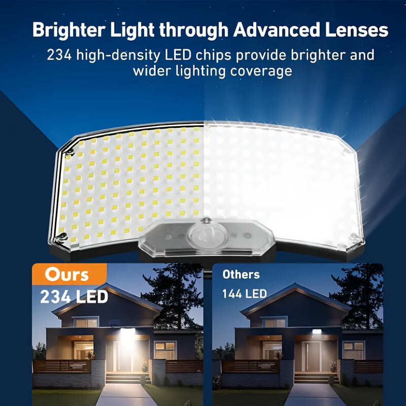 1pieza 234 LED Luz Solar con Cable Extendido, Fácil Instalación, 6500K Sensor de Movimiento Luz Solar Exterior Seguridad con 3 Modos para Patio Exterior Cerca Pasaje Divisor Diseño