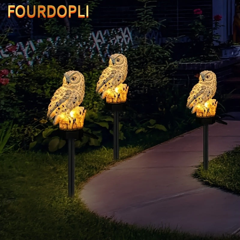 2 Luces Solares de Búho, Farol Solar para Jardín con Estaca, Temática Animal, Control Encendido/Apagado, Pilas de Níquel, Decoración para Césped y Patio