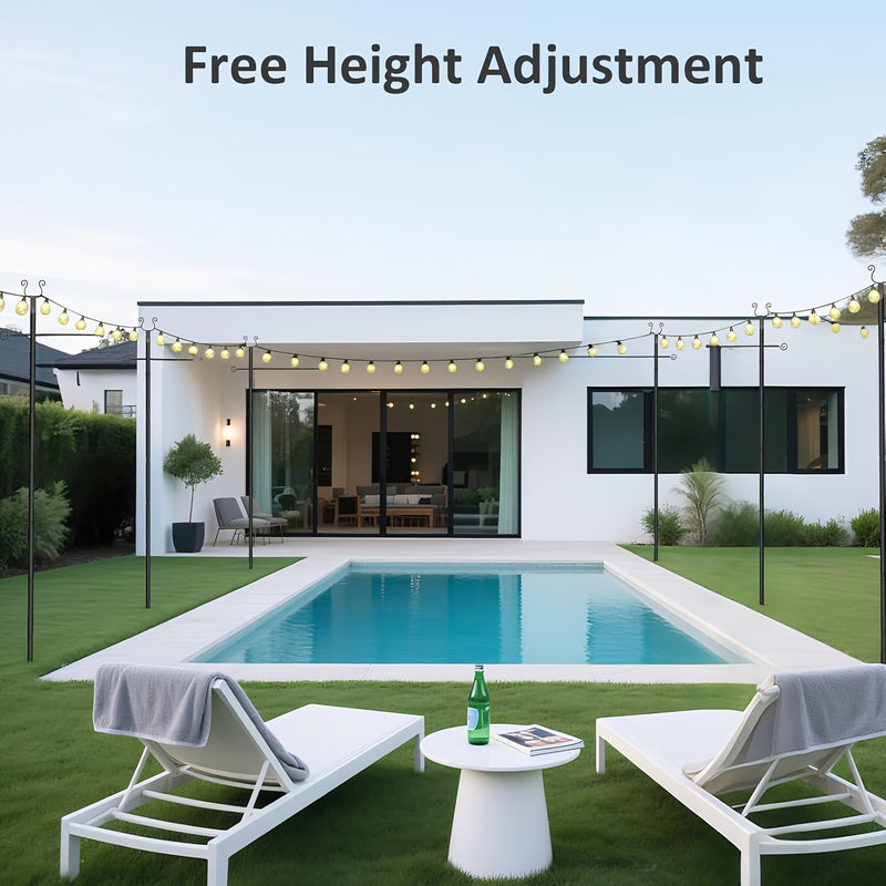 2 Paquetes de Columnas de Luces de Cuerda de Metal Pesado - 10 pies (3,05 metros) de Columnas Ajustables para Exteriores con Grueta, No Se Necesita Cableado para Patio, Muelle, Jardín, Boda - Columnas de Iluminación Duraderas y Resistentes al Tiempo, Dec