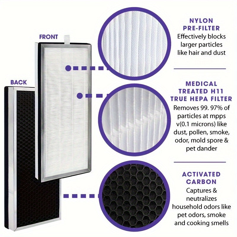 2 Piezas, Filtros De Repuesto Es Medify Air Ma-25, Para Alérgenos, Humo De Incendios Forestales, Polvo, Olores, Polen, Caspa De Mascotas, 3 En 1 Con Prefiltro, Hepa H13 Y Carbón Activado Para Una Eliminación Del 99,7%