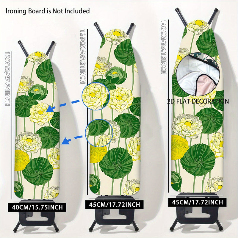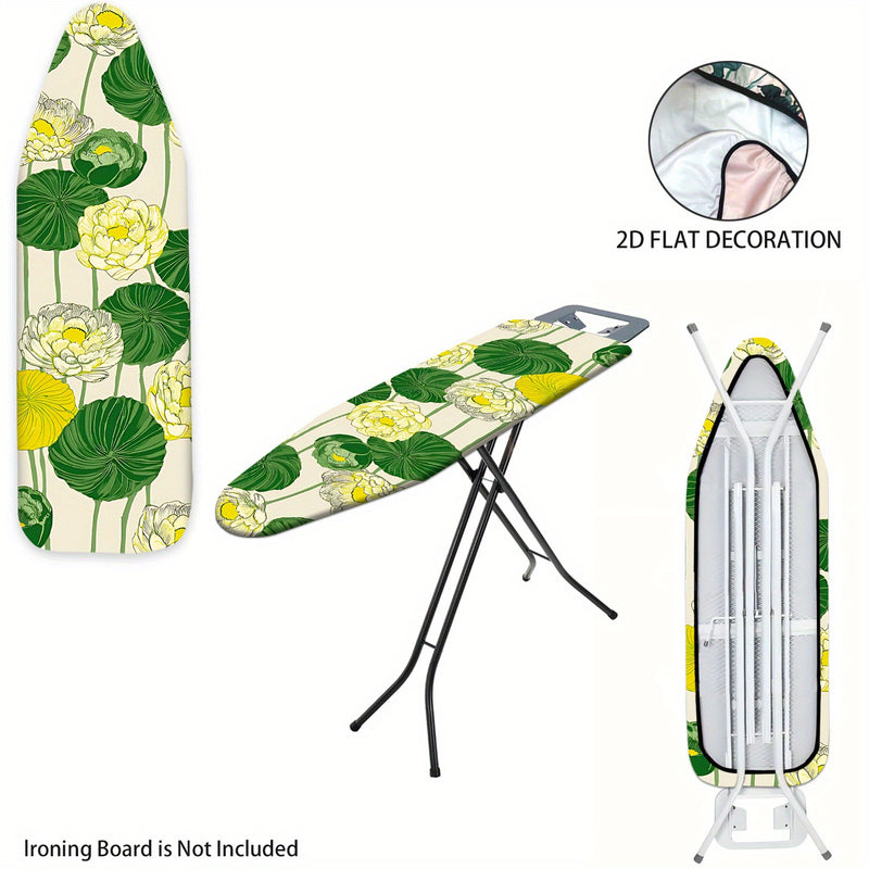 2D Plano, Cubierta de Tablero de Planchar 2D Plano - Lavable, Fácil de Instalar, Se Ajusta a la Mayoría de Tableros de Planchar de Tamaño Estándar, Patrón Floral Vibrante con Flores Amarillas y Hojas Verdes, Decoración del Hogar para Verano y Otoño, No I