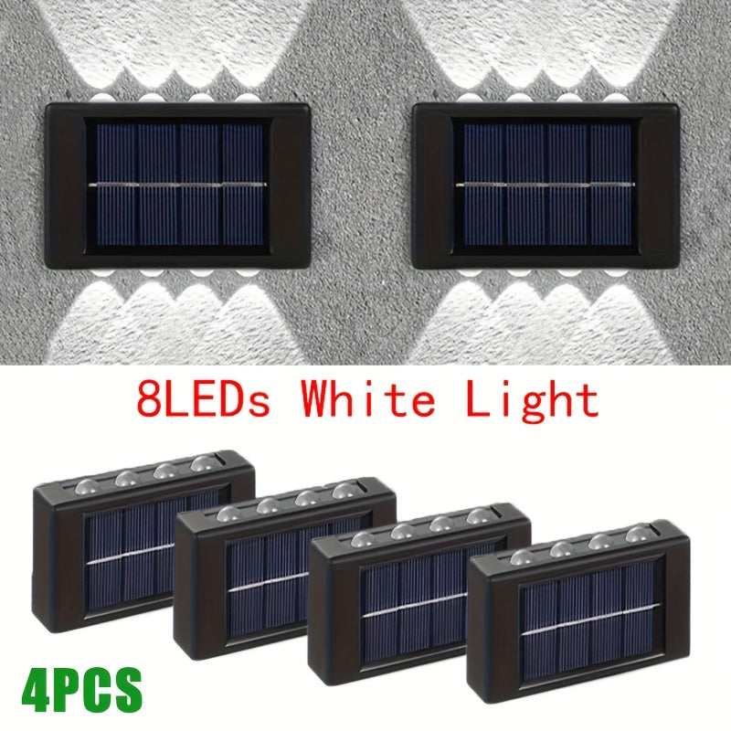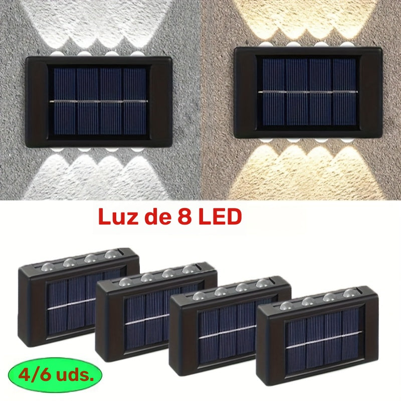 4 o 6 luces solares para pared, 8 LED, iluminación decorativa para jardín, patio o villa, montaje semiempotrado, material plástico, carga solar, batería de níquel de 600 mAh, sin control remoto, incluye hardware de instalación