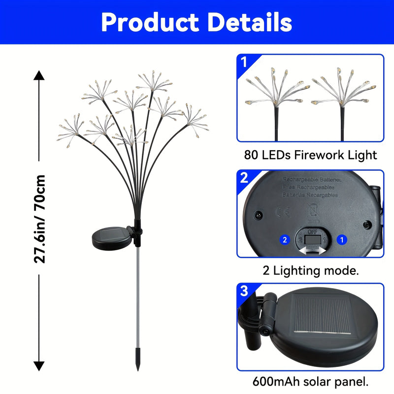 6 piezas de luces de sendero YAAFEN con energía solar, 480 LED, 2 modos de destello y estable, acero inoxidable, sombra de resina, ideal para jardín, sendero, patio, maceta de flores, camping, fiestas - Decoración perfecta para regalo de Navidad, ilumina