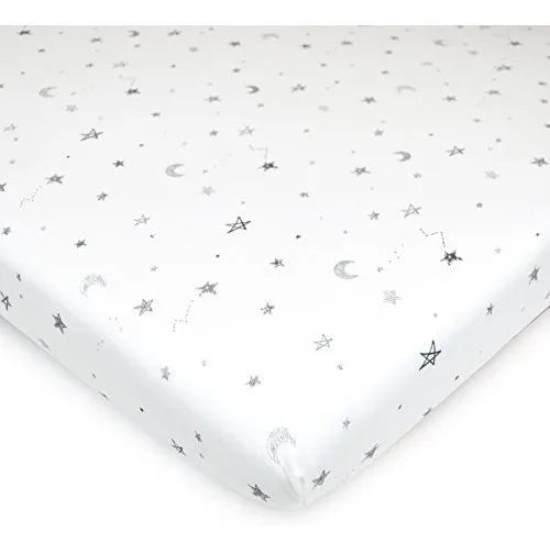 NOMBRE EN ESPAÑOL: Sábana ajustable para moisés, algodón 100%, estampado gris estrella y luna,