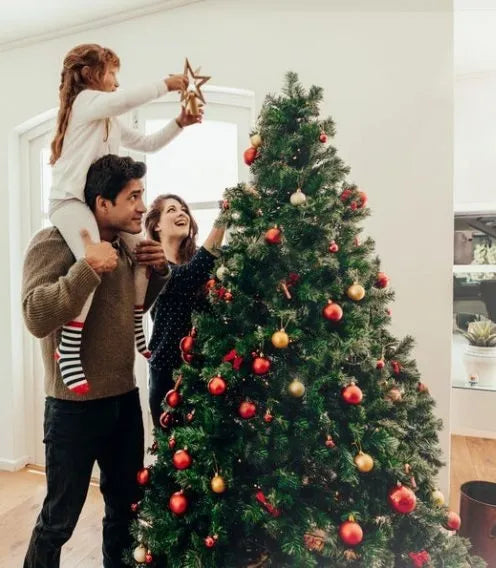 Árbol navideño de gran tamaño y calidad, ideal para poner en tu sala en época de navidad.