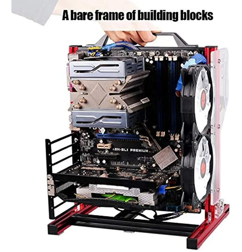 Un marco desnudo ligero y compacto de bloques de construcción, fácil de desmontar y superpuesto. | Admite tarjetas gráficas independientes, que requieren accesorios opcionales para tarjetas gráficas. | Perfil de aluminio 20x20 con estructura vertical estable. | Diseño de chasis abierto, buena disipación de calor. Admite fuente de alimentación ordinaria ATX. | Construcción de perfil de aluminio simple, para que experimente completamente la diversión del bricolaje DESCRIPCIÓN LARGA--