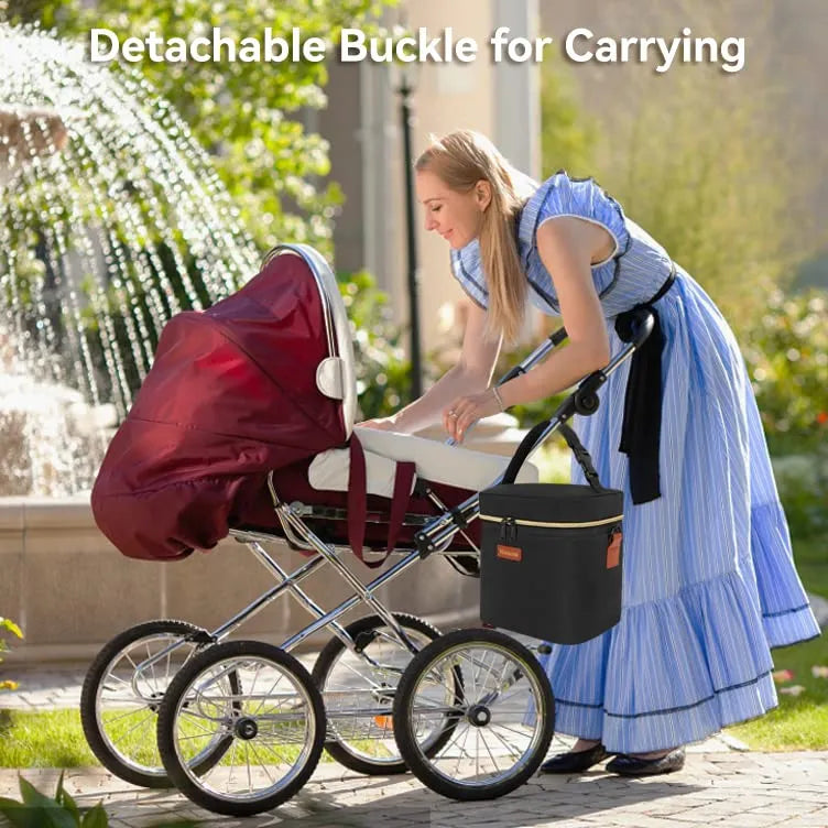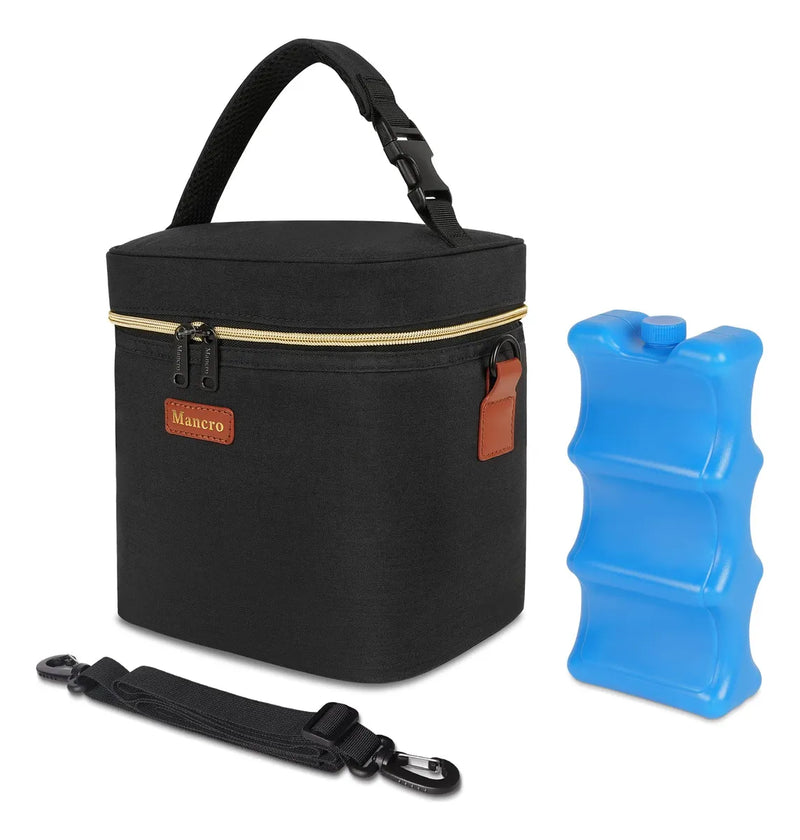 Mancro, una marca profesional no solo produce bolsas y mochilas, sino que tambin contribuye al procesamiento de productos de viaje como bolsas de ropa. El ncleo de Mancro es el cliente primero. A travs de la innovacin y el esfuerzo, nuestros productos estarn a la moda y tcnicos. Esta bolsa para biberones est hecha de tela de nailon, una especie de fibra sinttica que es de alta resistencia al impacto, buena resistencia al agua puede resistir desgarros en el uso diario. Dimensiones: 8.66 x 7 x 8.66 pulgadas. Funcin: mantiene la leche materna y los alimentos frescos hasta 8 horas. Diseo: 1. Cremallera de doble va. 2. Correa para poner en el cochecito. 3. Material a prueba de fugas y fcil de limpiar. 4. Correa de hombro desmontable