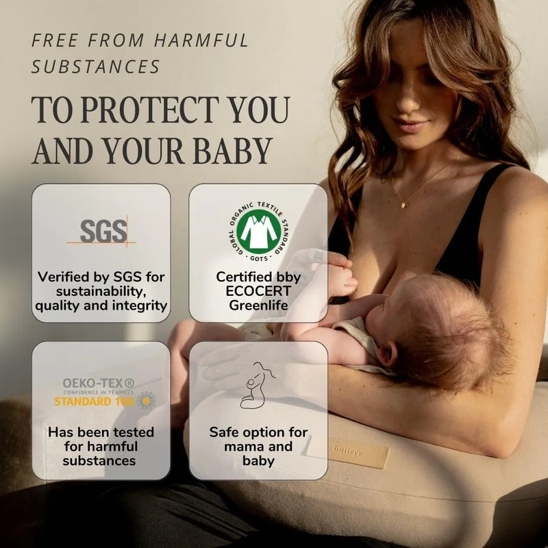 Disenado por mamas para mamas. Nuestra intencion era crear una almohada de lactancia de alta calidad hecha de materiales naturales para proporcionar un apoyo optimo, sin perder forma con el tiempo. La almohada de lactancia Natural Butterr es versatil y proporciona un posicionamiento ergonomico para apoyar cualquier estilo de lactancia materna y alimentacion con biberon. La almohada ofrece un uso multifuncional que crece con tu bebe para unirse, tiempo boca abajo y apoyo al sentarse. La almohada de lactancia Butterr esta hecha de uno de los materiales mas sostenibles y naturales, por lo que es una opcion mucho mas segura para mama y bebe. Nuestras fundas de almohada de lactancia Butterr estan hechas de algodon suave, hipoalergenico y certificado GOTS, que ha sido probado y no contiene niveles daninos de mas de 100 sustancias nocivas conocidas. Cada almohada de lactancia Butterr viene en una bolsa de transporte de malla reutilizable para facilitar el transporte y es imprescindible para tu bolsa de hospital. Disenado especificamente para acercar a mama y bebe aun mas para un viaje magico de enfermeria mas alla de lo comun. ¡Un articulo imprescindible para el registro de bebes y un favorito de los padres que se ha agotado dos veces! Un diseno que mantendra su estructura, por lo que puede transmitirse de nino a chid, todo mientras abraza la maternidad sostenible.