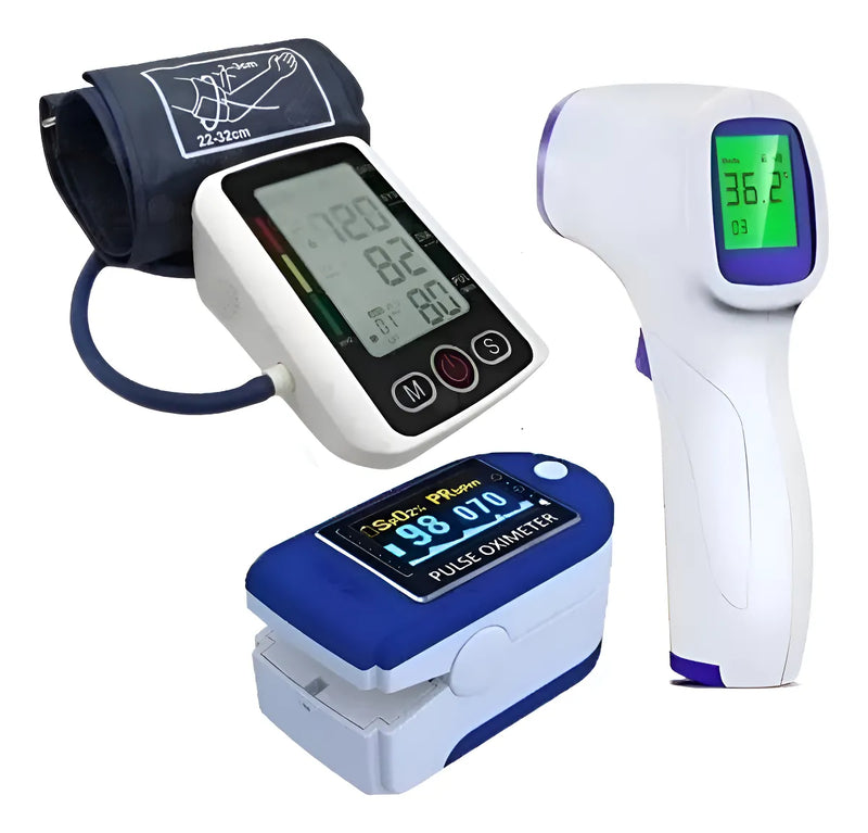 Combo De Oxímetro +tensiómetro Digital Con Voz + Termómetro Blanco