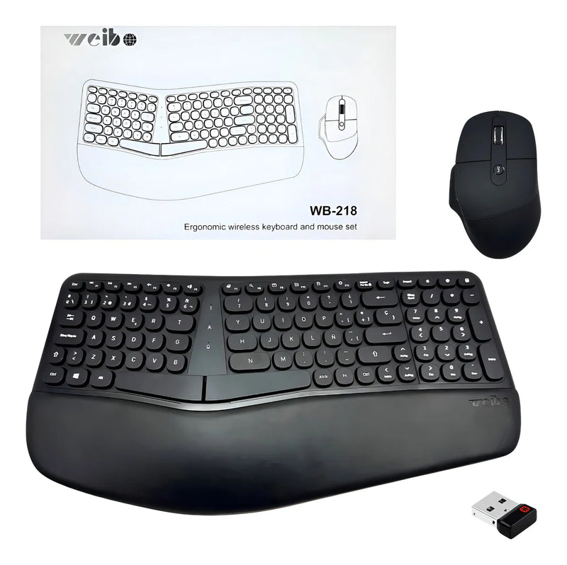 Combo Teclado Mouse Inalambrico Ergonomico Receptor Usb Weib Teclado Negro