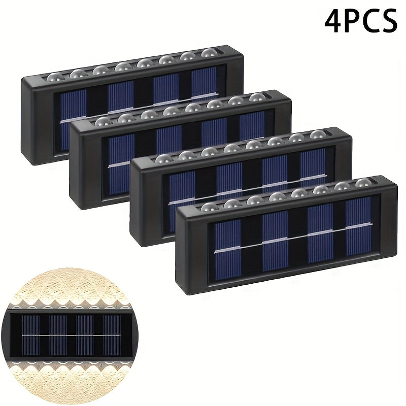 Conjunto de 4 piezas, luz de pared con espejo cóncavo y solares de 16 LEDs, luz decorativa para exteriores, luz LED de paisaje doméstica IP44, adecuada para exteriores, patio, villa, cerca, terraza, jardín