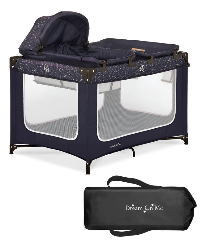 Emily Rose Corral de lujo en azul galaxia con moisés infantil y bandeja cambiadora, ligero, portátil y convertible para bebé, laterales de malla transpirable y tela suave